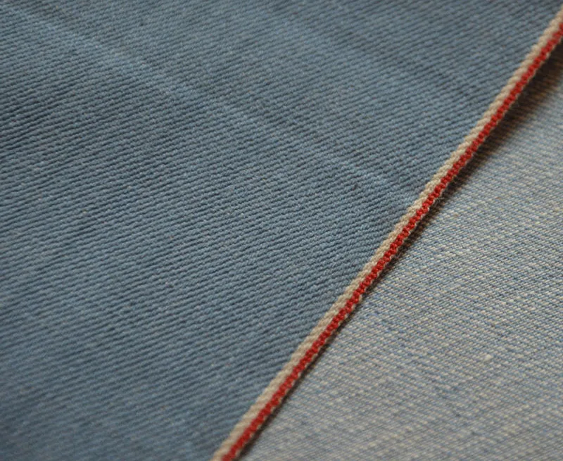 2.Custom/Newly Produce raw selvedge denim:Normally newly produce or custom order is required 3000yards,while WingFly offers some black selvedge denim and indigo selvedge denim in small minimum order quantity to custom,for the one Warp Yarn Red Core Selvedge Denim 800yards+ is ok to produce,and so on some other raw indigo denim 2000yards ok newly produce,for example red selvedge denim fabric.